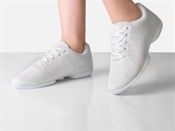 Fjerlette hvide trænings dansesneakers til damer med enestående fleksibilitet på alle gulve - hvad enten det er parket eller asfalt. Skoene har en todelt, fleksibel PU-sål for let og kontrolleret drejning og glidning, plus god stødabsorbering - ideel til line dance, Zumba, salsa, træning, jazzdans swing, rock'n'roll og argentinsk tango.