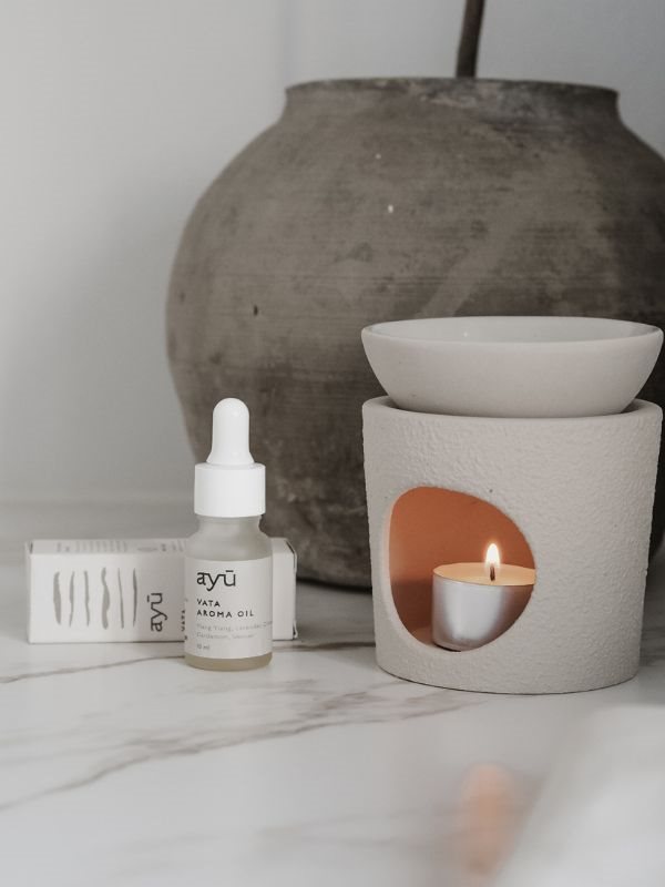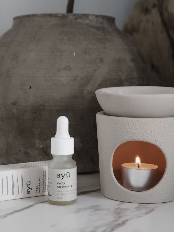 Vær opmærksom på, at AYÛ Vata Aromaolie er designet til brug i aromabrændere og må ikke indtages eller anvendes direkte på huden.