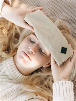 YOGA øjenpude i beige fra Simple days. Betræk: 100% bomuld, som kan vaskes. Fyld: hørfrø. Mål:10x25 cm.
