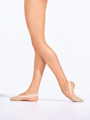 Capezio Skind Pirouette i nude kombinerer elegance og funktionalitet med sit halve-sål-design. Den solide læderforfod giver støtte og komfort, mens den åbne hæl sikrer optimal åndbarhed under dansen. Elastikker langs siderne og under svangen holder skoen sikkert på plads, så du kan udføre piruetter og drejninger ubesværet. Det diskrete Capezio-logo på den balletsko-inspirerede ruskindssål tilføjer et eksklusivt touch.