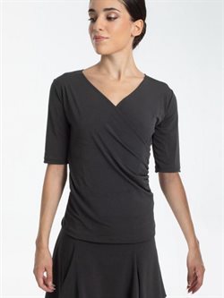 Dansebluse i sort med med slå-om effekt