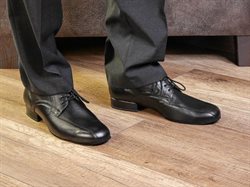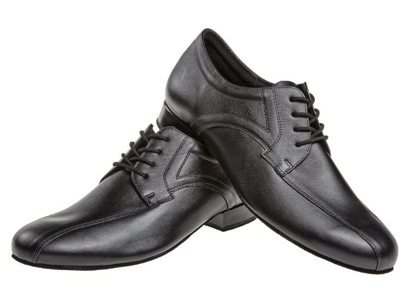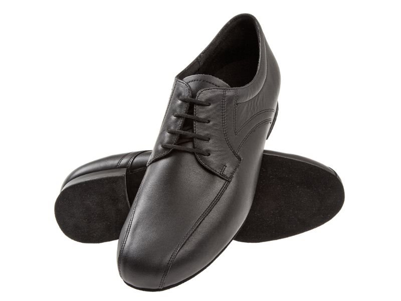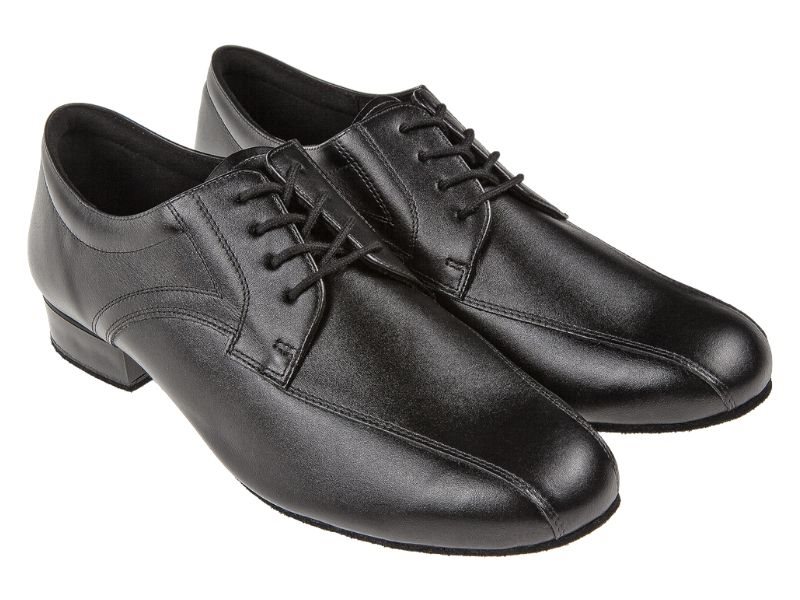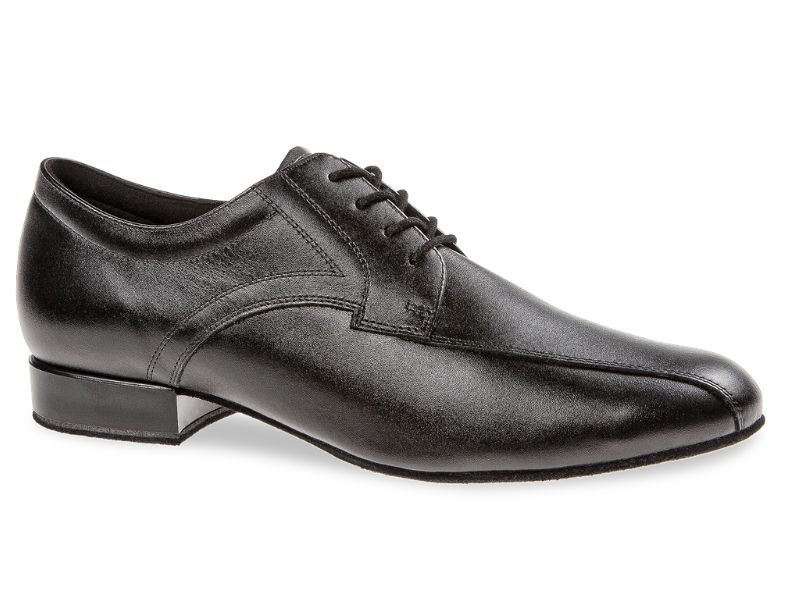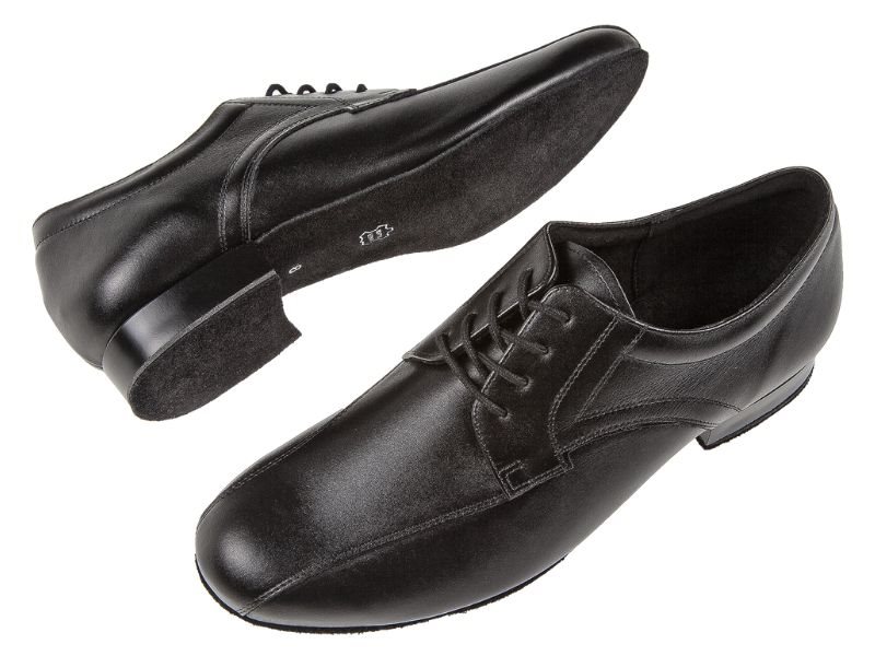 Diamant komfort dansesko standard sort skind. Håndlavet i Tyskland, kombinerer klassisk stil med moderne funktionalitet. Fremstillet i blødt, sort ægte italiensk kalvenappa, tilbyder de en sporty Derby-model med åben 4-huls snøring og polstret skaftkant. Den indvendige mikrofiber af premium italiensk kvalitet er åndbar og fugtabsorberende, ideel til lange danseaftener. Med en stødabsorberende standardhæl på 2 cm sikrer disse sko både stil og komfort på dansegulvet.