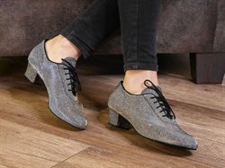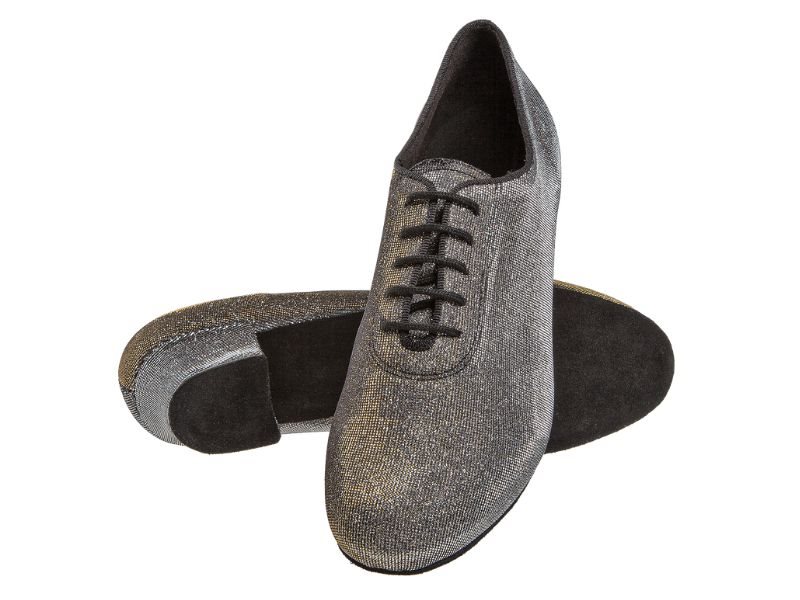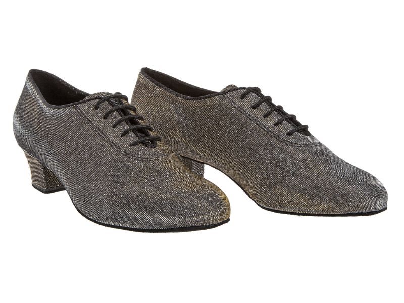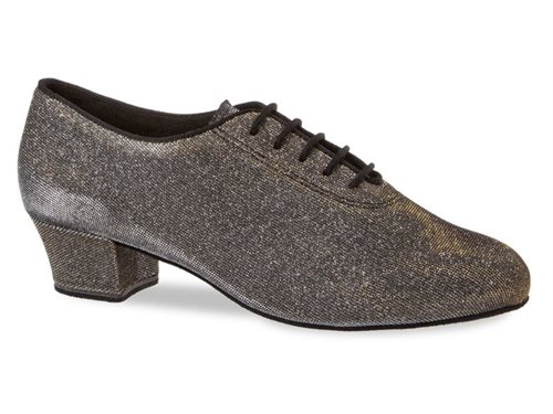 Diamant sort-sølv træningssko til damer, perfekt til alle former for dans. Håndlavet i Tyskland, disse sko kombinerer funktionalitet med stil. Udstyret med 5-huls snøring sikrer de en perfekt pasform, mens den stabile 3,7 cm cuban-hæl giver fremragende balance. Diamant Comfort-fodsengen tilbyder uovertruffen komfort, og det åndbare, fugtabsorberende mikrofiberforing holder fødderne friske. Overdelen i glitrende sort/sølv brokade fra Italien skifter farve efter lyset, hvilket tilføjer et unikt touch til dit outfit.