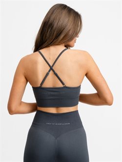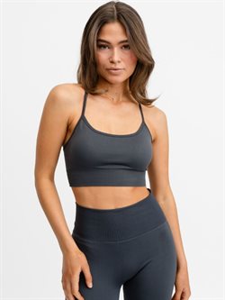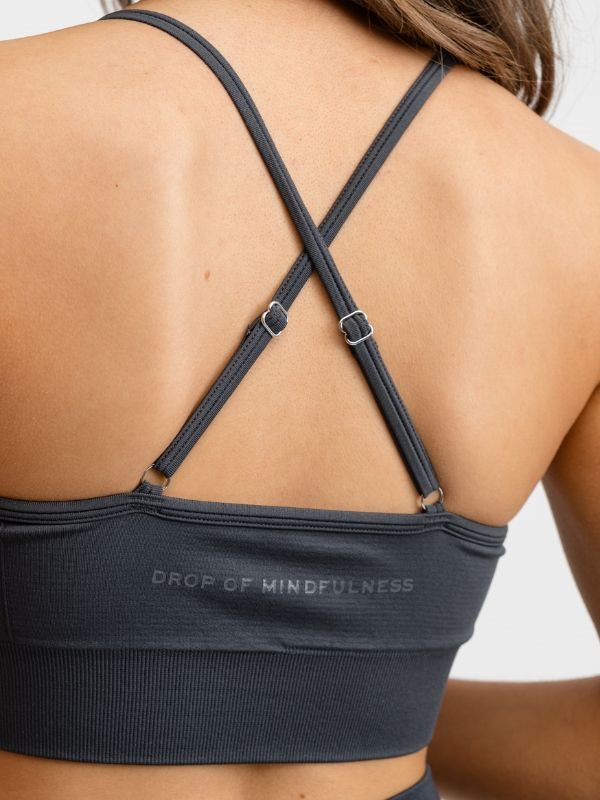 Signature seamless sports bh i ny iron grey farve fra Drop of mindfulness er meget blød og behagelig med justerbare stropper, der krydser ryggen. Sports-bh'en har en rib under brystet for bedre støtte, så du kan føle dig godt tilpas til alle former for træning. Bh toppen har puder der let kan tages ud. Normal i størrelsen, men anbefalingen er, at du går en størrelse ned, hvis du ligger mellem to størrelser. Ved produktion af denne top tænkes der på miljøet, da rundstrik minimerer produktionsspild.