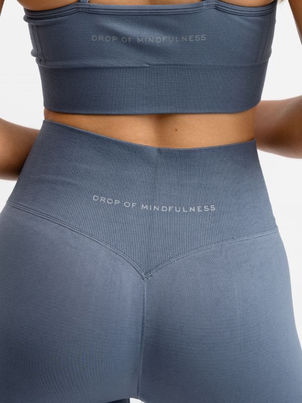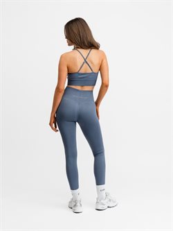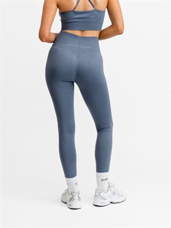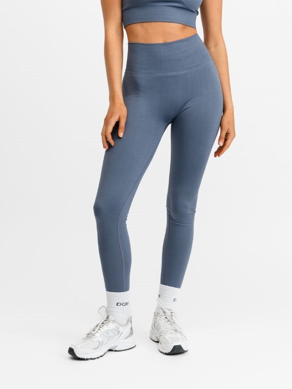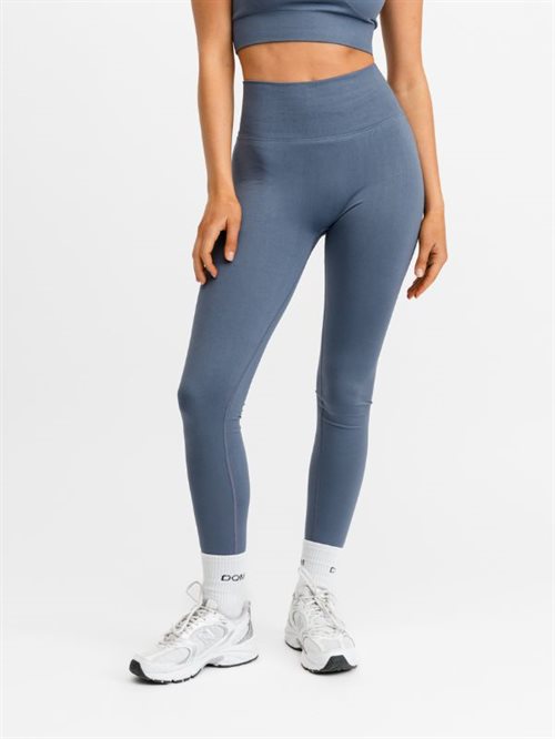 DOM Signature blå seamless tights. Musthave i træningsgarderoben. Komfortable og bløde træningstights giver dig en behagelig "second-skin" følelse og har en flatterende V-form bagpå. Med det brede ribbede taljebånd sidder alt på plads under hele træningen. Uanset om du løber, danser, træner, laver yoga eller bare vil have en behagelig hverdagstights, så er disse tights perfekte. Lavet af 92% Poliamid og 8% Elastan, sikrer de optimal bevægelsesfrihed. Vaskes ved 30 grader med lignende farver og undgå brug af skyllemiddel og tørretumbling.