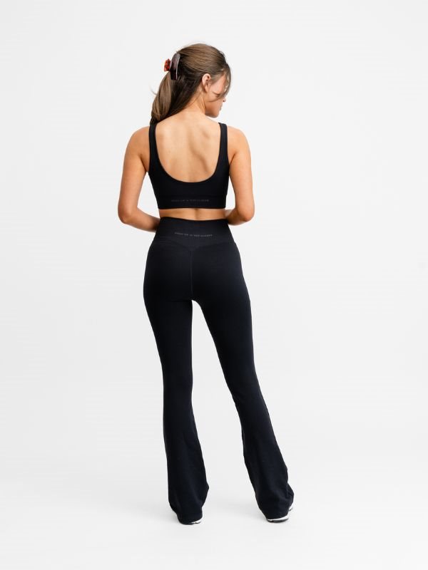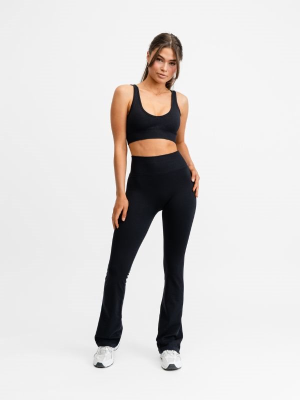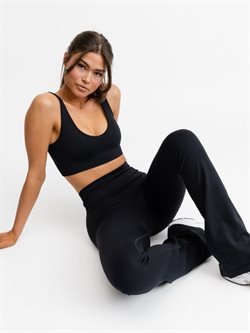Med deres alsidige og elegante design bliver disse sorte flare tights hurtigt en fast favorit i din garderobe. Perfekte til dans, træning, yoga, pilates, eller som et stilfuldt og behageligt valg til hverdagsbrug. Giv dit look et moderne løft med DOM Sort Seamless Flare Tights, uden at gå på kompromis med funktionalitet.