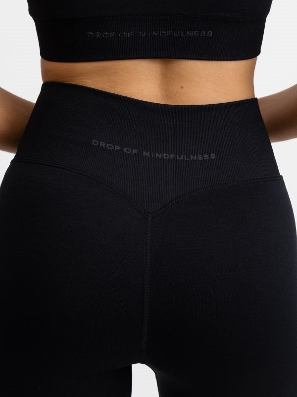DOM Sort Seamless Flare Tights. Designet med en høj, ribbet talje, tilbyder disse tights optimalt hold og en smigrende silhuet, der holder dig sikker og komfortabel under alle aktiviteter. Den unikke V-formede detalje på bagsiden fremhæver dine kurver og sikrer en perfekt pasform, der naturligt følger din krops bevægelser.