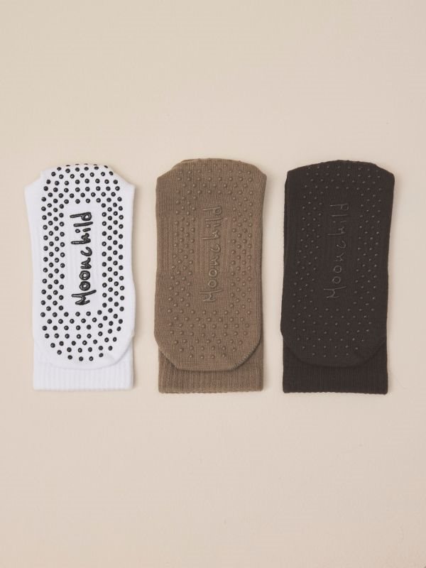 De karamelfarvet silikonegrebspunkter med Moonchild-logo langs sålerne sikrer forbedret stabilitet og trækkraft. Dette skridsikre design hjælper dig med at bevare balancen og kontrollen, så du kan udføre hver bevægelse med selvtillid.