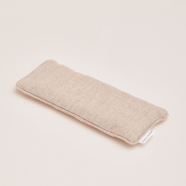 25 x 10 cm. Øjenpudebetræk: 50% hamp, 50% økologisk bomuld. Betrækket kan vaskes på 30 grader.