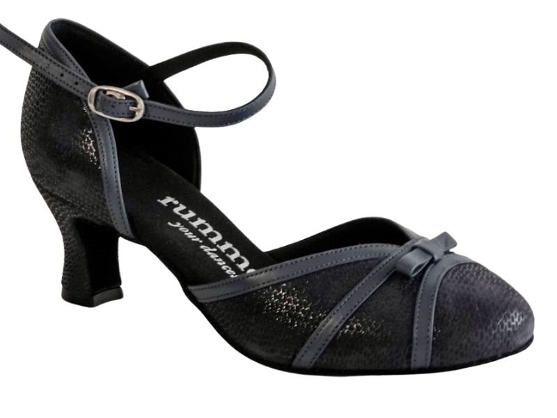Rummos blå og sort lukket dansesko til damer med 5 cm hæl. Meget fleksibel med en mellem sål af blød kork