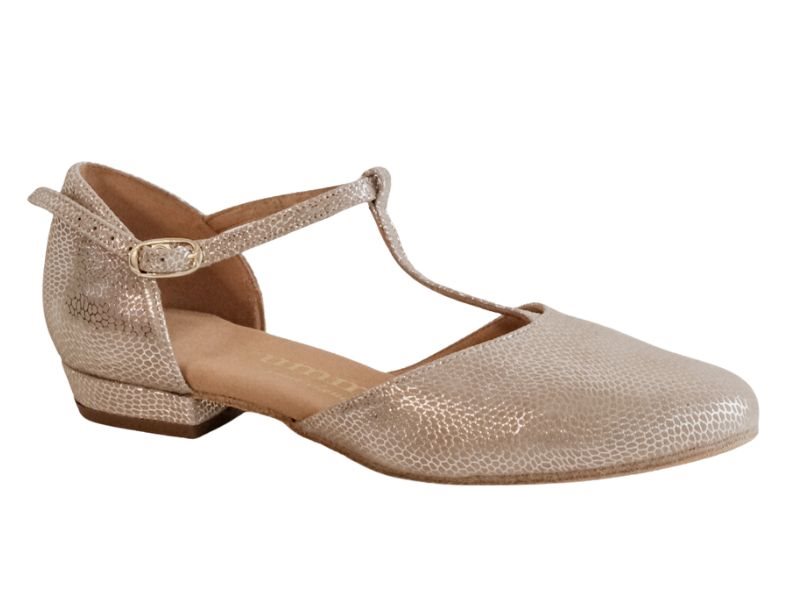 Rummos guld dansesko med fantastisk pasform og komfort. Skoen er både blødt og slidstærkt. Perfekt valg til dig der vil have en lav hæl, plus til West Coast Swing og Lindy Hop.