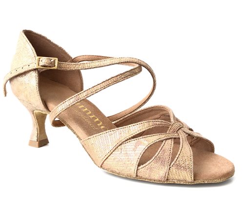 Rummos dansesko beige og guld ton i ton mønster