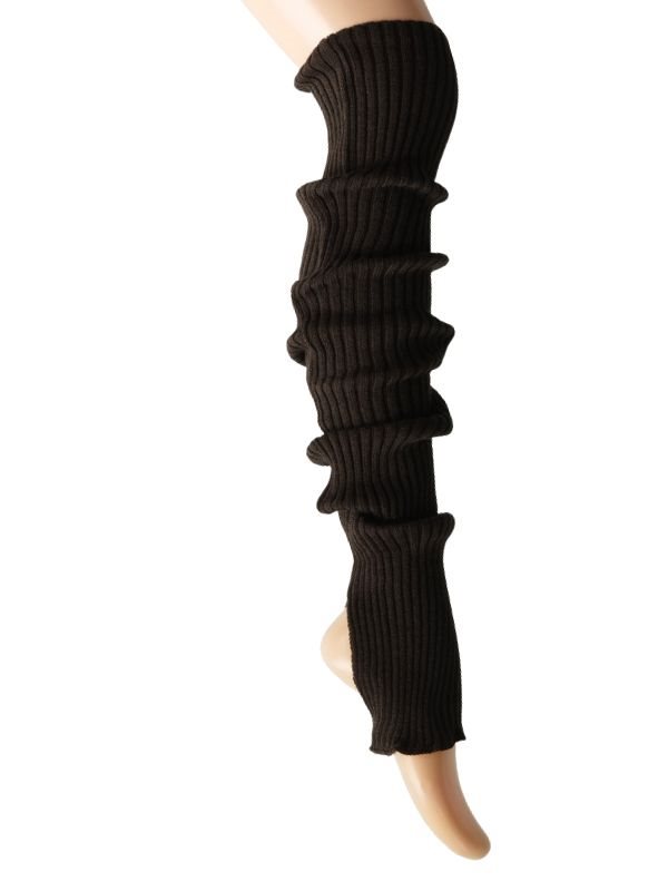 Lækre ribstrikket benvarmere i mørkebrun med hul til hælen. 85 CM. 1 PAR