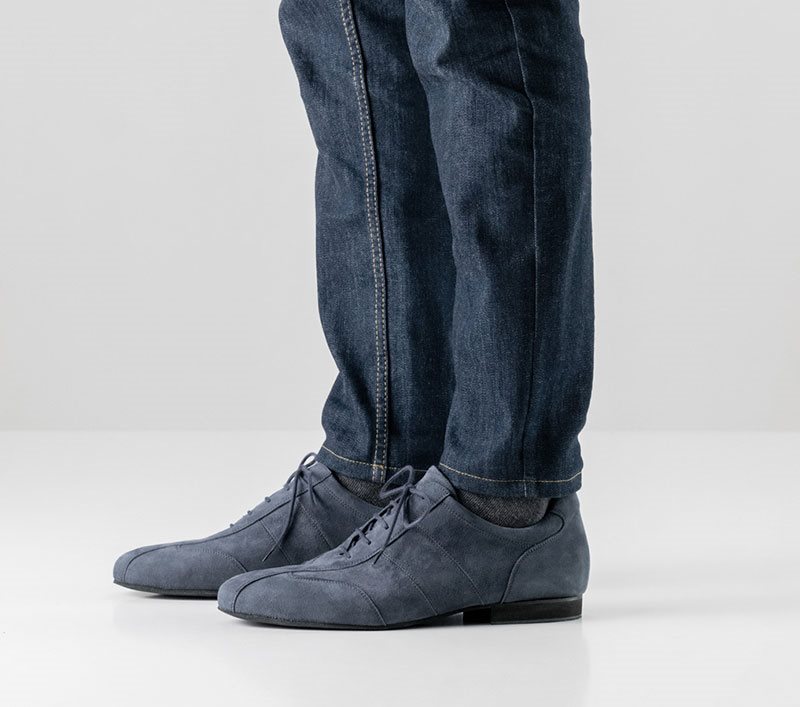 Ultra-blød handske-kvalitet Werner Kern herredansesko i flot blå farve med behagelige 4-hullers snøring med Nikkel-fri skjulte øjer. Hele hælområdet er omgivet af en handske-kvalitet, læderbetræk polstring samt en stabil og behagelig pasform. Skoen er foret med blødt handske-kvalitet kalveskind. Fantastisk behagelig 1,5 cm hæl